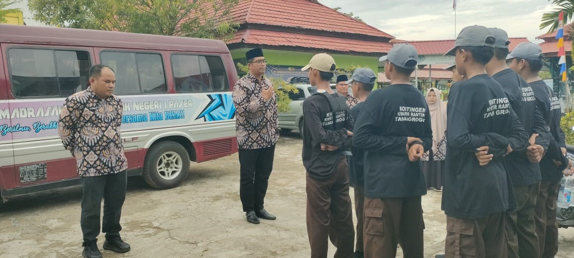 Paser (Madrasah) – Kepala Madrasah Tsanawiyah Negeri 1 Paser Ridayatullah, S.Pd., berikan motivasi dan do’a kepada Peserta didik yang tergabung dalam pramuka gugus depan panglima sudirman yang akan mengikuti Jambore Kwartir Cabang Paser, di Kecamatan Batu Engau Rabu (13/08) sampai dengan Sabtu (16/08).