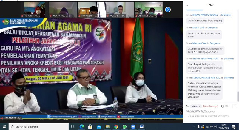 Pada kegiatan pembukaan, Drs. Muhran selaku kepala Balai Diklat Keagaaman Banjarmasin mengatakan “Fungsi dari diklat adalah proses penyelenggaraan belajar dalam rangka meningkatkan kemampuan Pegawai Negeri Sipil. Kegiatan Pelatihan bertujuan untuk mengembangkan kompetensi sumber daya manusia (SDM) meliputi pengetahuan, keterampilan dan sikap atau perilaku, dan Tujuan pelatihan meningkatkan kemampuan pengetahuan, skill maupun teknologi dalam pembelajaran agar menjadi professional” katanya.