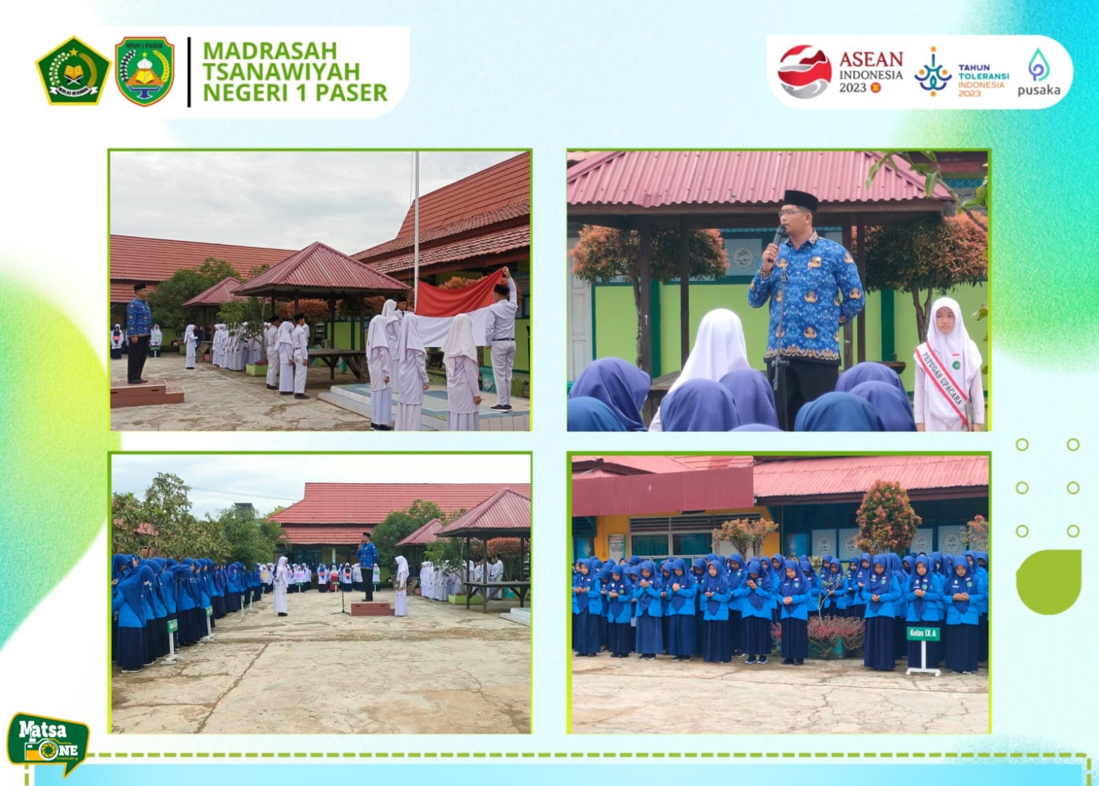 Upacara bendera kali ini juga sekaligus menandai pembukaan MATSAMA di MTsN 1 Paser. Upacara bendera berlangsung khidmat sampai akhir. Sebagai petugas upacara adalah anggota OSIM MTs Negeri 1 Paser. (jh)