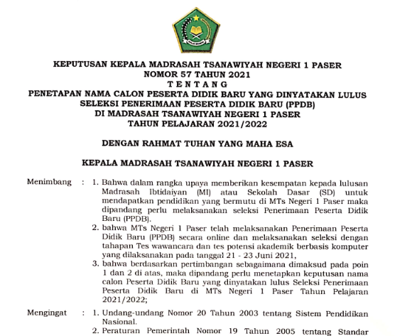 Pelaksanaan UMBK menjadi salah satu bentuk evaluasi akhir bagi peserta didik dalam mengukur capaian kompetensi selama menempuh pendidikan di MTsN 1 Paser. Dengan memanfaatkan teknologi komputer, ujian ini diharapkan dapat meningkatkan efisiensi serta transparansi dalam proses penilaian.